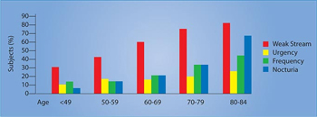 Figure 3. Increasing Prevalence of Lower Urinary Tract Symptoms (LUTS) with Advancing Age. As men age, the prevalence of LUTS increases as a reflection of prostate enlargement.2 |